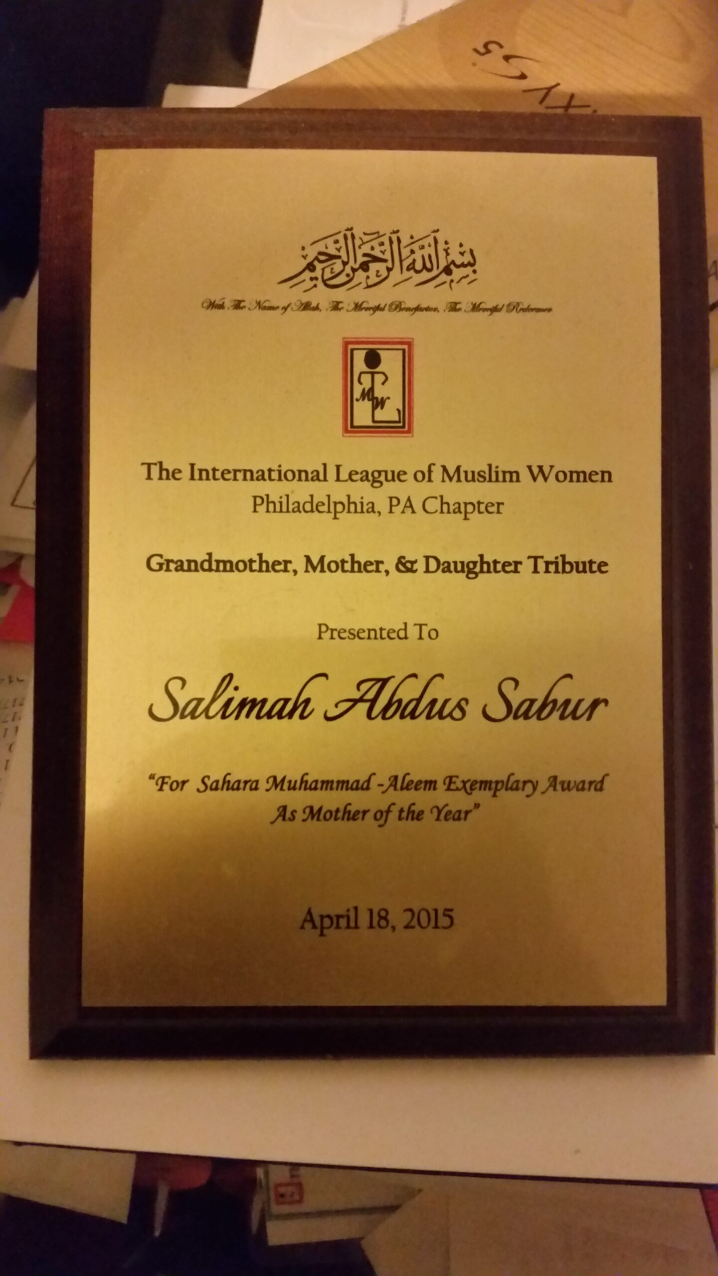 International League of Women Recognition 2015